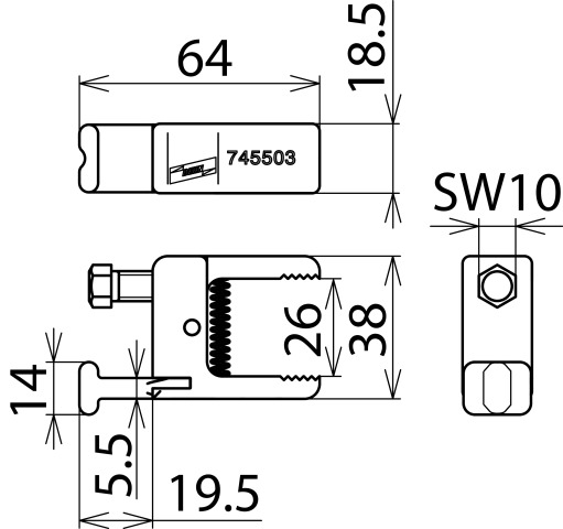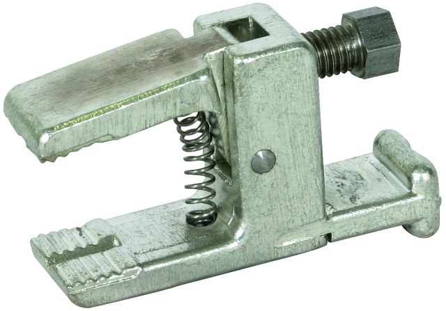 Kompaktowy zacisk ze sprężynowym elementem dociskowym. Ze sworzniem T-kształtnym i sześciokątną śrubą ustalającą SW10. Do wkładania za pomocą uchwytu uziemiającego VI i mocowania za pomocą uchwytu do wkręcania z elastycznym trzpieniem.