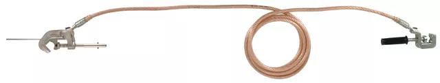 Jednobiegunowe urządzenie do uziemiania i zwierania zgodnie DIN VDE 0683-100 (EN/IEC 61230) do linii zasilających i linii sieci trakcyjnej kolei elektrycznych; długość 4 m; z zaciskiem na przewody, zaciskiem uniwersalnym i rękojeścią.