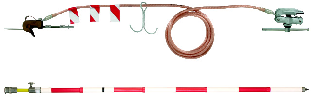 Urządzenie do uziemiania do linii napowietrznych, praca poza skrajnią, z hakiem, zestaw BEV OL PF K