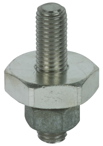 Łącznik sworzniowy do przykręcania z gwintowanym sworzniem i oddzielną nakrętką sześciokątną, jako punkt przyłączeniowy do instalacji uziemiającej po stronie uziemienia zgodnie z DIN VDE 0683-100 (EN/IEC 61230).