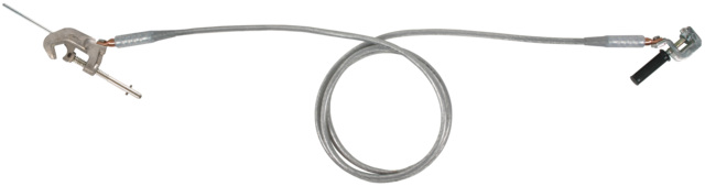 Jednobiegunowe urządzenie do uziemiania i zwierania zgodnie DIN VDE 0683-100 (EN/IEC 61230) do linii zasilających i linii sieci trakcyjnej kolei elektrycznych; długość 4 m; z zaciskiem na przewody, zaciskiem uniwersalnym i rękojeścią.