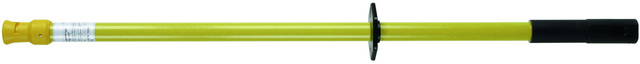 Drążek uziemiający, jednoczęściowy, wykonanie z trzpieniem z poprzecznym kołkiem. Głowica robocza ze złączem bagnetowym i sprężyną dociskową zapewniająca stabilne mocowanie przenośnych urządzeń do uziemiania i zwierania, do uziemienia i zwierania instalacji energetycznych o dużym natężeniu prądu zgodnie z DIN VDE 0105-100 (EN 50110). Końcówka z antyobrotowym złączem wtykowym z tworzywa sztucznego, umożliwiającym szybkie i łatwe przedłużanie rękojeści.