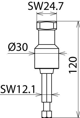 Operating head with hexagon shaft 24 mm and hexagon coupling 12 mm for emergency operating of engine drives.