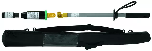ASP distance voltage detector in accordance with E DIN VDE 0682-417 for verifying safe isolation from supply voltage on all poles at the work location in accordance with EN 50110-1 (DIN VDE 0105-100) in electrical installations. Category "L" for overhead lines. Suitable for use in wet weather conditions. With visual and acoustic indication and self-testing element, transport case included.