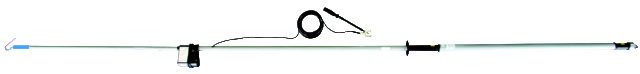 Rezystancyjny wskaźnik napięcia stałego PHE/G, jeden drążek, do napowietrznych linii jezdnych, biegun ujemny na głowicy pomiarowej, o zintegrowanej konstrukcji zgodny z DIN VDE 0682-411 (EN/IEC 61243-1) do wykrywania braku napięcia instalacji elektrycznych do 1,65 kV DC poprzez zetknięcie w miejscu pracy zgodnie z DIN VDE 0105-100 (EN 50110-1). Zacisk po stronie uziemienia z regulowanym uchwytem. Można stosować także podczas opadów.