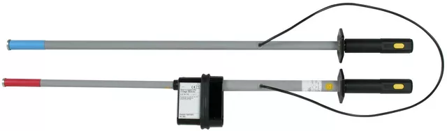 Rezystancyjny wskaźnik napięcia stałego PHE/G, dwa drążki, do rozdzielnic, biegun dodatni na głowicy pomiarowej, o zintegrowanej konstrukcji zgodny z DIN VDE 0682-411 (EN/IEC 61243-1) do wykrywania braku napięcia instalacji elektrycznych do 750 V DC poprzez zetknięcie w miejscu pracy zgodnie z DIN VDE 0105-100 (EN 50110-1). Można stosować także podczas opadów.