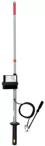 Rezystancyjny wskaźnik napięcia stałego PHE/G, jeden drążek, do rozdzielnic, biegun dodatni na głowicy pomiarowej, o zintegrowanej konstrukcji zgodny z DIN VDE 0682-411 (EN/IEC 61243-1) do wykrywania braku napięcia instalacji elektrycznych do 24 kV DC poprzez zetknięcie w miejscu pracy zgodnie z DIN VDE 0105-100 (EN 50110-1). Zacisk po stronie uziemienia z regulowanym uchwytem i stykiem magnetycznym. Można stosować także podczas opadów.