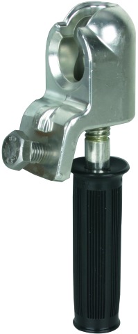 Zacisk kołpakowy sztywny z rękojeścią z tworzywa sztucznego jako element przyłączeniowy po stronie uziemienia zgodnie z DIN VDE 0683-100 (EN/IEC 61230) do kulowych punktów mocowania, do wyposażenia po stronie uziemienia przewodów uziemiających i zwierających. Wykonanie antyobrotowe PK 1.