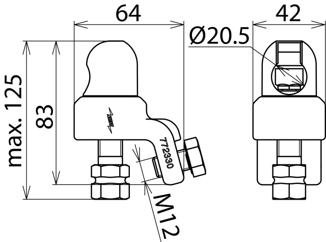 Zacisk kołpakowy regulowany, do kulowego punktu mocowania o śr. 20 mm, złącze sześciokątne, do przewodu o przekroju 16-120 mm² KKH 20 D SK