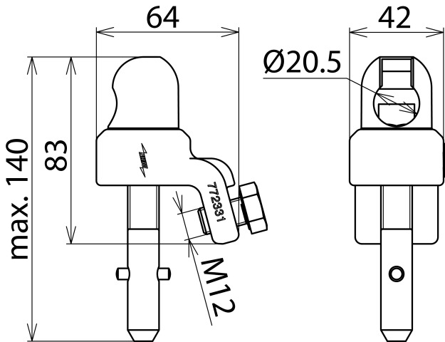 Zacisk kołpakowy obrotowy (4 x 90 °), trzpień z poprzecznym kołkiem jako element przyłączeniowy po stronie uziemienia lub fazy zgodnie z DIN VDE 0683-100 (EN/IEC 61230) do kulowych punktów mocowania, do wyposażenia przewodów uziemiających i zwierających. Wykonanie antyobrotowe PK 1.