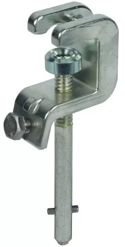 Zacisk uniwersalny, długi trzpień z poprzecznym kołkiem jako element przyłączeniowy po stronie uziemienia lub fazy zgodnie z DIN VDE 0683-100 (EN/IEC 61230) do kulowych punktów mocowania, T-kształtnych punktów mocowania, drutów i płaskowników, do wyposażenia przewodów uziemiających i zwierających. Wykonanie antyobrotowe PK 1.