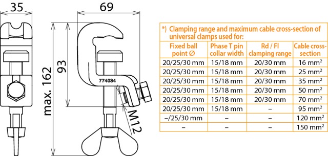 Uniwersalny zacisk uziemiający ze śrubą motylkową jako element przyłączeniowy po stronie uziemienia zgodnie z DIN VDE 0683-100 (EN/IEC 61230) do kulowych punktów mocowania, T-kształtnych punktów mocowania, drutów i płaskowników, do wyposażenia po stronie uziemienia przewodów uziemiających i zwierających. Wykonanie antyobrotowe PK 1.