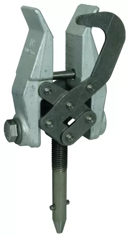 Śrubowy zacisk fazowy (równoległe prowadzenie szczęk zacisku z zapadką bezpieczeństwa) z długim gwintowanym trzpieniem i poprzecznym kołkiem jako element przyłączeniowy po stronie fazy zgodnie z DIN VDE 0683-100 (EN/IEC 61230) do wprowadzania pod kątem do linii napowietrznych wysokiego napięcia, do wyposażenia przewodów uziemiających i zwierających. Wykonanie antyobrotowe PK 2.