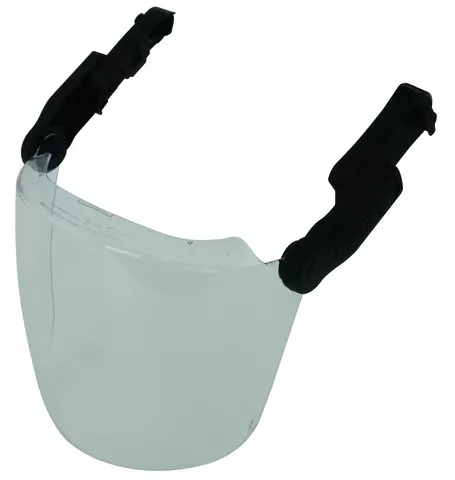 Odporna na działanie łuku elektrycznego przyłbica ochronna DEHNcare APS z klipsem i dźwignią mechaniczną do prac konserwacyjnych i utrzymaniowych na instalacjach elektrycznych. Pasuje do gniazda wtykowego na kasku ochronnym dla elektryków ESH U.