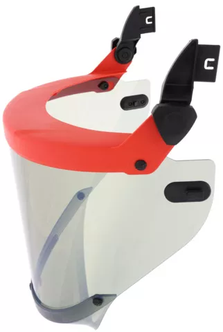 Odporna na działanie łuku elektrycznego przyłbica ochronna DEHNcare APS T AS z klipsem i przezroczystą osłoną podbródka do prac konserwacyjnych i utrzymaniowych na instalacjach elektrycznych. Pasuje do gniazda wtykowego na kasku ochronnym dla elektryków ESH U S. Certyfikowane zgodnie z wymogami rozporządzenia ŚOI (UE) 2016/425 w sprawie wprowadzania do obrotu środków ochrony indywidualnej. Wysoki komfort noszenia. Wysokie działanie ochronne dzięki innowacyjnej aktywnej ochronie. Optymalna widoczność dzięki powłoce zapobiegającej zaparowaniu i wysokiej przepuszczalności światła (klasa przepuszczalności światła widzialnego: 2). Przetestowana pod kątem odporności na łuk elektryczny zgodnie z branżowymi zasadami kontroli GS-ET-29: Klasa 2 i 423 kJ / m2 i ASTM F2178: 14 cal / cm2.