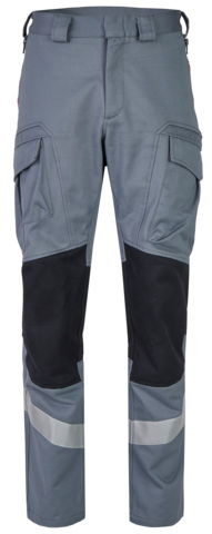 Odporne na działanie łuku elektrycznego spodnie ochronne DEHNcare APT ID do prac konserwacyjnych i utrzymaniowych na instalacjach elektrycznych wewnątrz budynków. Certyfikowane zgodnie z wymogami rozporządzenia ŚOI (UE) 2016/425 w sprawie wprowadzania do obrotu środków ochrony indywidualnej. Wysoki komfort noszenia dzięki zastosowaniu 1-warstwowej tkaniny. Odblaskowe paski dla zwiększonej widzialności. Test z użyciem komory pobierczej według norm IEC 61482-1-2, EN ISO 11612, EN 1149-5.