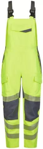 Odporne na działanie łuku elektrycznego spodnie ogrodniczki DEHNcare APD OD do prac konserwacyjnych i utrzymaniowych na instalacjach elektrycznych na zewnątrz budynków. Certyfikowane zgodnie z wymogami rozporządzenia ŚOI (UE) 2016/425 w sprawie wprowadzania do obrotu środków ochrony indywidualnej. Wysoki komfort noszenia dzięki zastosowaniu 1-warstwowej tkaniny. Odblaskowe paski dla zwiększonej widzialności. Test z użyciem komory probierczej według norm IEC 61482-1-2, EN ISO 11612, EN 1149-5, EN 13034 (PB 6), EN ISO 20471.