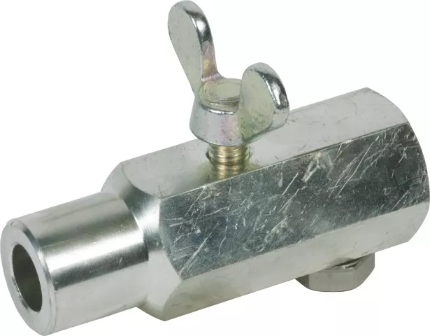 Tuleja uziemiająca ze śrubą motylkową do wypustów uziemiających z rowkiem pierścieniowym Ø = 16 mm, jako element przyłączeniowy po stronie uziemienia zgodnie z DIN VDE 0683-100 (EN/IEC 61230), do wyposażenia po stronie uziemienia przewodów uziemiających i zwierających. Wykonanie antyobrotowe PK 1.