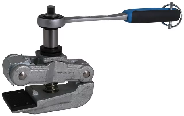 Zacisk do szyn, wykonanie ze zdejmowanym kluczem zapadkowym, zgodnie z DIN VDE 0683-100 (EN/IEC 61230), do uziemiania szyn o profilu S49, S54, S64 i UIC60 poza skrajnią.
