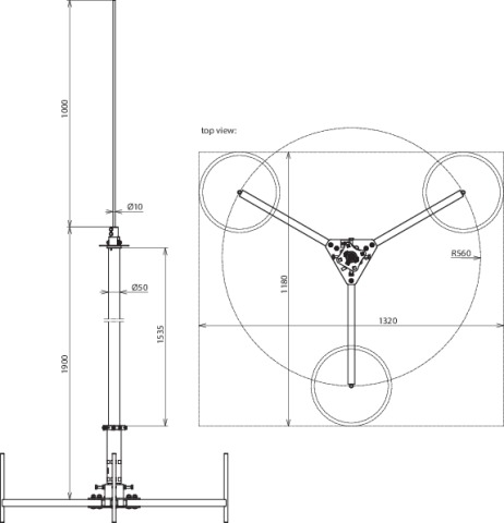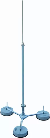 Maszt odgromowy 50 do przewodów HVI light, do ustawiania na dachach płaskich, z możliwością kompensacji nachylenia dachu do maks. 10°. Kompletny z poczwórną płytką przyłączeniową do przewodu HVI light, z zestawem mocującym do montażu przewodu na statywie na trzech nogach. Wykonanie SET I, wysokość całkowita 2900 mm, w zestawie rura wsporcza GRP/aluminium oraz iglica odgromowa.