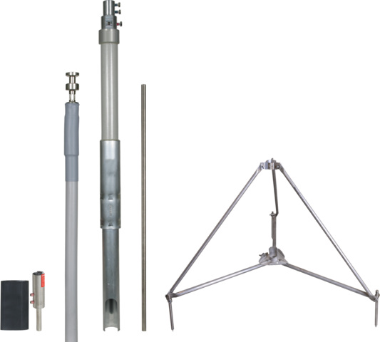 Przewód HVI (przewód odprowadzający o izolacji wysokonapięciowej) w rurze wsporczej, pozwalający zachować odstęp separujący od elementów przewodzących prąd zgodnie z DIN EN 62305-3 (VDE 0185-305-3). Zapobiega niebezpiecznym przebiciom między częściami zewnętrznej instalacji odgromowej a wewnętrznymi częściami przewodzącymi (instalacja elektryczna, rurociągi itp.). Aby uniknąć wyładowań ślizgowych, przewód HVI posiada specjalny płaszcz zewnętrzny, który umożliwia odprowadzanie wysokich impulsowych napięć piorunowych względem potencjału odniesienia. Wykonanie przewodu HVI (szary), z końcówką przyłączeniową wewnątrz i wyrównawczym elementem sprężynowym w rurze wsporczej (długość 3200 mm), z iglicą odgromową (Ø10 mm, długość 1000 mm), elementem uziemiającym i statywem na trzech nogach. Ekwiwalentny odstęp separujący s ≤ 75 cm (w powietrzu), s ≤ 150 cm (materiał stały).