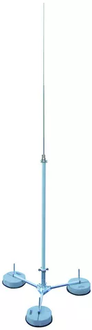 Maszt odgromowy 50 do przewodów HVI light, do ustawiania na dachach płaskich, z możliwością kompensacji nachylenia dachu do maks. 10°. Kompletny z poczwórną płytką przyłączeniową do przewodu HVI light, z zestawem mocującym do montażu przewodu na statywie na trzech nogach. Wykonanie SET III, wysokość całkowita 4900 mm, w zestawie rura wsporcza GRP/aluminium oraz iglica odgromowa.
