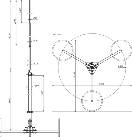 Maszt odgromowy o śr. 50 mm z iglicą, do przewodu HVI light, ze statywem, wys. 4900 mm FM D50 22 16 10 4900 GFK AL DBS KB STTZN