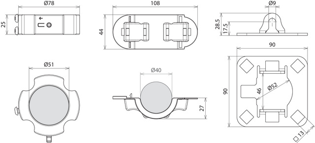 Zestaw mocujący przewód HVI light plus na rurze wsporczej o śr. 40 mm BFS SR D40 4AE HVI LI PL AL V2A KST
