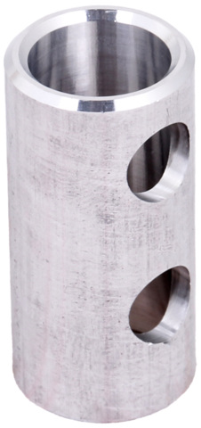 Reduzieradapter aus Aluminium für Aufnahmen Ø22 mm zur mittigen Montage von Fangstangen Ø16 mm auf Stützrohren.