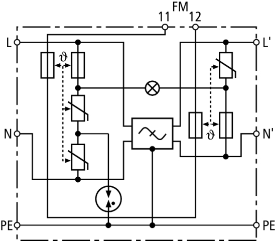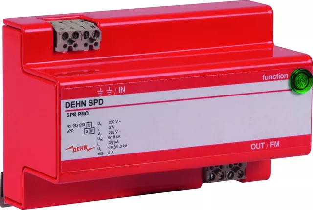 Dwubiegunowy ogranicznik przepięć SPS-Protector z filtrem przeciwzakłóceniowym, typ 3 zgodnie z EN 61643-11. Kombinacja ochrony przepięciowej i filtra. Do ochrony obwodu zasilania urządzeń elektroniki przemysłowej przed przepięciami przejściowymi w szafach rozdzielczych. Do stosowania zgodnie ze strefową koncepcją ochrony odgromowej jako przejście pomiędzy strefami 1 – 2 i wyżej.