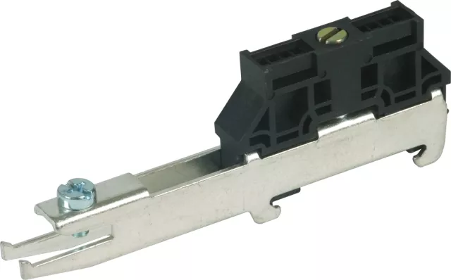 Łącznik szynowy do konstrukcji uziemionych, do montażu na wspornikach szynowych. Niskoimpedancyjny element połączeniowy zacisków do uziemiania ekranów kabli przez szynę zbiorczą do szyny.