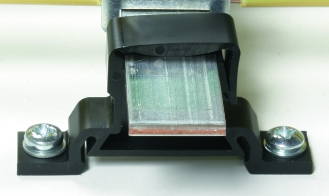 Łącznik szynowy do konstrukcji izolowanych, do montażu na wspornikach szynowych lub poprzez przyłączenie śrubowe.