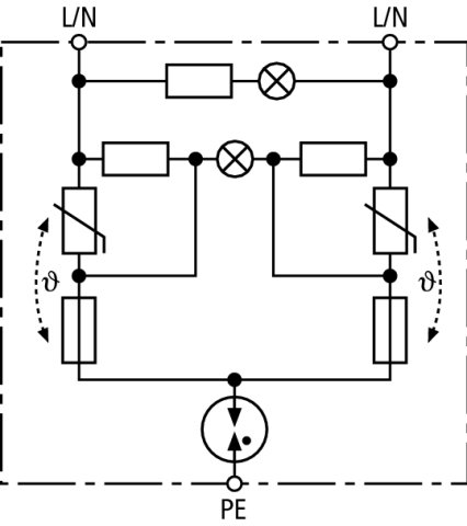 Dwubiegunowy ogranicznik przepięć NSM-Protector, typ 3 zgodnie z EN 61643-11, z układem kontrolnym i układem odłączającym. Większe bezpieczeństwo dzięki odpornemu na błędy obwodowi ochronnemu Y. Do ochrony urządzeń elektronicznych przed przepięciami. Gniazdo sieciowe z uziemieniem i wbudowaną ochroną przepięciową do montażu w instalacjach elektrycznych. Do stosowania zgodnie ze strefową koncepcją ochrony odgromowej jako przejście pomiędzy strefami 1 – 2 i wyżej.