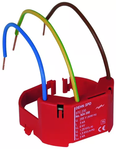 Moduł STC do dwubiegunowych ograniczników przepięć, typ 3 zgodnie z EN 61643-11, z układem kontrolnym i układem odłączającym. Większe bezpieczeństwo dzięki odpornemu na błędy obwodowi ochronnemu Y. Do ochrony urządzeń elektronicznych przed przepięciami. Do stosowania z dostępnymi na rynku gniazdami sieciowymi z uziemieniem. Do stosowania zgodnie ze strefową koncepcją ochrony odgromowej jako przejście pomiędzy strefami 1 – 2 i wyżej.