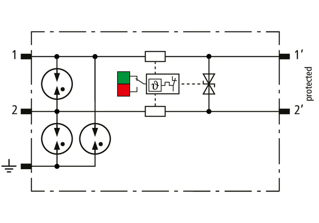 Moduł ochronny o szerokości 6 mm do ogranicznika BLITZDUCTORconnect ze wskaźnikiem stanu, , do ochrony jednej pary iskrobezpiecznych obwodów pomiarowych i systemów magistralnych, spełnia wymagania FISCO. Wytrzymałość izolacji > 500 V linia-ziemia.