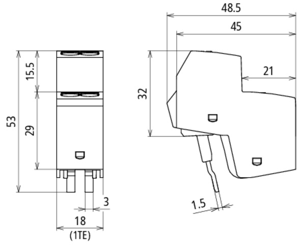 Zacisk w technice wtykowej („push-in”) do okablowania przelotowego ograniczników przepięć do 10 mm². Pasuje do DEHNguard MP.