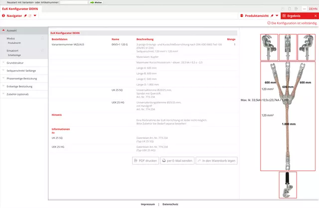 Trójbiegunowe urządzenie do uziemiania i zwierania zgodnie DIN VDE 0683-100 (EN/IEC 61230), przekrój poprzeczny przewodu: 25 mm² / 25 mm², maks. prąd zwarciowy / czas trwania: 7,0 kA / 0,5 s – 2,5; Długość A=B=C= 600 mm, Długość D = 1800 mm; Wyposażony po stronie fazy w 3 zaciski uniwersalne Ø20/25 mm, SQ z art. nr 773 234 i wyposażony po stronie uziemienia w 1 zacisk uniwersalny uziemienia Ø20/25 mm, z rękojeścią i art. nr 774 234.