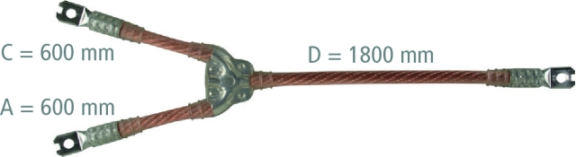 Dwubiegunowe przewody do uziemiania i zwierania zgodnie DIN VDE 0683-100 (EN/IEC 61230), po stronie fazy i uziemienia bez elementów przyłączeniowych, do uzupełnienia odpowiednimi zaciskami, zgodnie z normą DIN VDE 0683-100 (EN/IEC 61230). Przekrój poprzeczny przewodu: 16 mm2, maksymalnym prądzie zwarciowym: 4,5 kA / 0,5 s, Długość przewodu A = 600 mm, C = 600mm oraz D = 1800 mm, nr wariantu V7265NS. Urządzenia do uziemiania i zwierania można zestawiać online za pomocą konfiguratora urządzeń do uziemiania i zwierania na stronie www.dehn.de/de/euk.