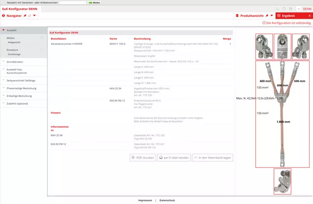 Trójbiegunowe urządzenie do uziemiania i zwierania zgodnie DIN VDE 0683-100 (EN/IEC 61230), przekrój poprzeczny przewodu: 50 mm² / 50 mm², maks. prąd zwarciowy / czas trwania: 14,0 kA / 0,5 s – 2,5; Długość A=B=C= 600 mm, Długość D = 1800 mm; Wyposażony po stronie fazy w 3 zaciski kołpakowe sztywne Ø20 mm, SK z art. nr 772 310 i wyposażony po stronie uziemienia w 1 element przyłączeniowy uziemiający M12, z nakrętką motylkową i art. nr 775 621.