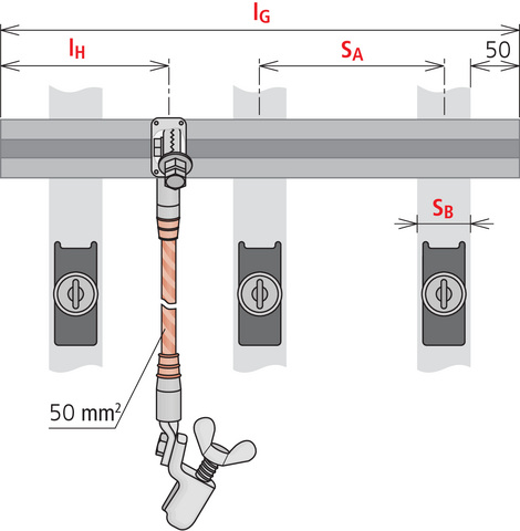 Szyna zwierająca wykonana z aluminium (AlMgSi 0,5) zgodnie z DIN VDE 0683-100 (EN/IEC 61230) do uziemiania i zwierania instalacji elektrycznych w miejscu pracy zgodnie z DIN VDE 0105-100 (EN 50110). Urządzenie mocujące: Trzpień sześciokątny, profil: 60 x 8 mm, maks. prąd zwarciowy: 90 kA / 0,5 s. Nr wariantu VNRLBXU (o standardowych długościach: Szyna zwierająca = 500 mm, przewód do uziemiania = 2500 mm wyposażony w zacisk kołpakowy sztywny art. nr 772 312)