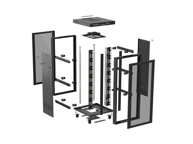 | Akcesoria w zestawie | Śruby M6, Zamek przedni, Zamki boczne, Zamek tylny, Kabel uziemiający, Kółka z hamulcem, Nóżki, Panel wentylacyjny (4 wentylatory), Termostat, Pionowy organizer kabli x2 |