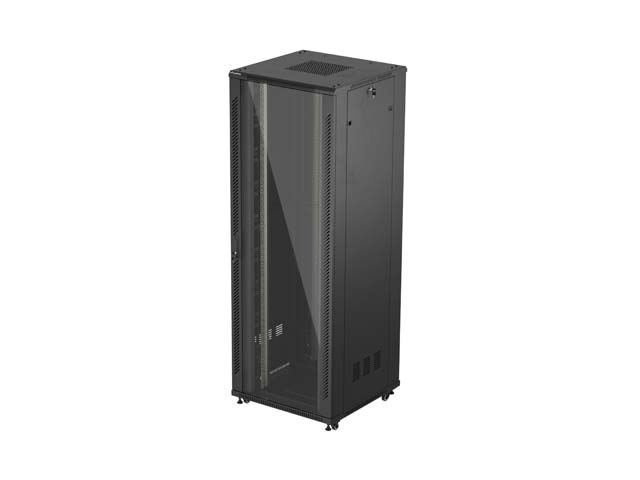 | Akcesoria w zestawie | Kółka z hamulcem, Nóżki, Panel wentylacyjny (4 wentylatory), Pionowy organizer kabli x2, Śruby M6, Zamek przedni, Zamek tylny, Zamki boczne |