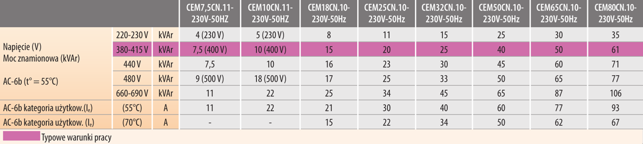 Wartość mocy zależy od napięcia pracy. Wartości przy innych napięciach podane są w tabeli poniżej.