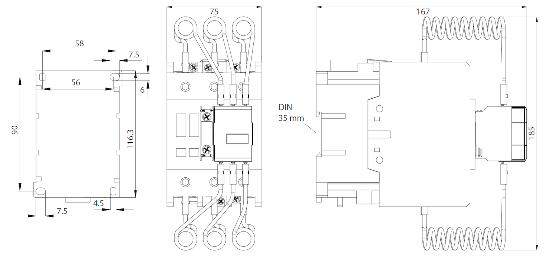 Moment dokręcania zacisków głównych stycznika zapewniający odpowiednie połączenie przewodów. Zachowanie sugerowanych wartości momentów dokręcania jest kluczowe dla zapewnienia trwałości i bezpieczeństwa pracy.