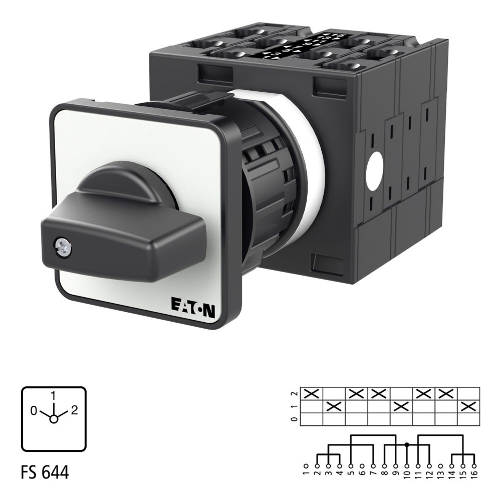 T3-4-8440/EZ Przełącznik liczby biegunów, Styki: 8, 32 A, układ Dahlandera, 2 prędkości, tabliczka: 0-1-2, 60 °, bez samopowrotu, montaż natablicowy 22,3 mm, pokrętło czarne bez możliwości blokady