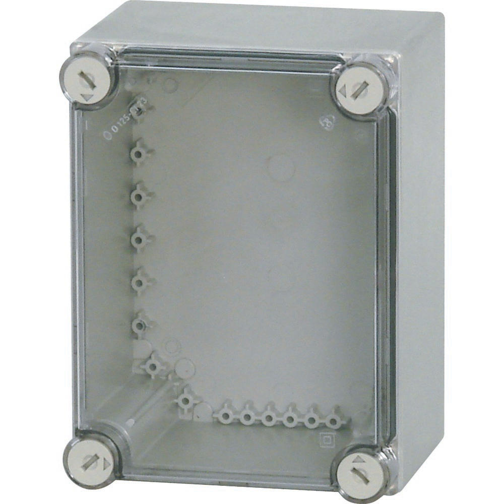 Pojedyncza obudowa bez wyposażenia, charakterystyka materiału Poliwęglan (PC), odporność na porażenia, stopień ochrony IP65, opcjonalna możliwość zamykania za pomocą DVZ...-CI, opatentowane zamknięcie pokrywy z wbudowanym wyrównaniem nadciśnienia, ściany boczne gładkie, bez wytłoczeń, łączniki mocujące do uchwytu ściennego, plombowane zamknięcia pokrywy, RAL 7032, piaskowa (skrzynia dolna), przezroczysta, bezbarwna (pokrywa), głębokość montażu przy płyci montażowej=125mm, wersja pokrywy: przezroczysta, wersja części dolnej: gładka