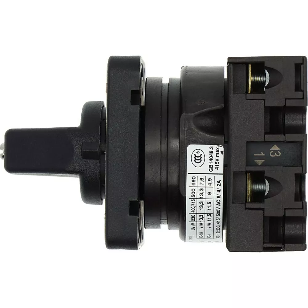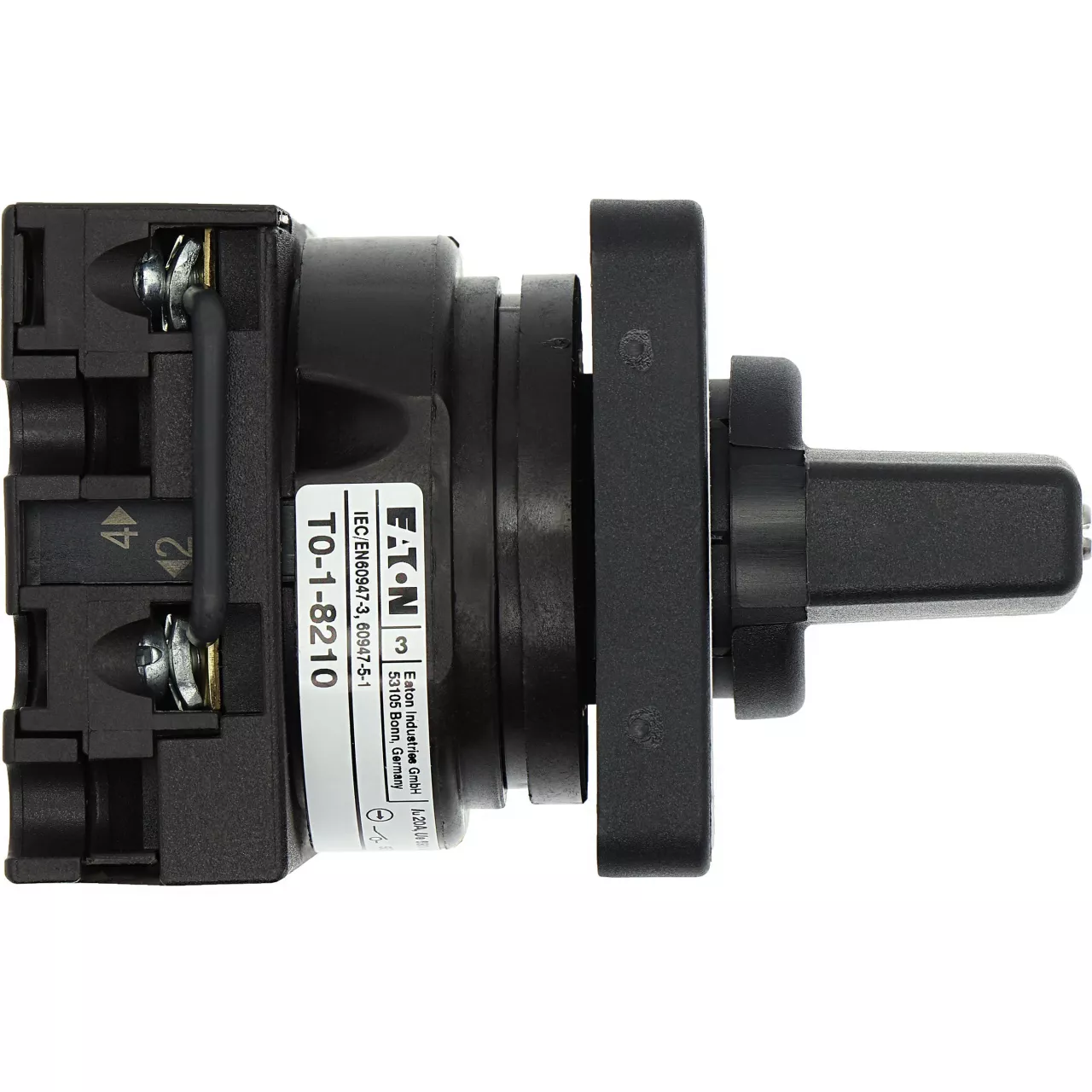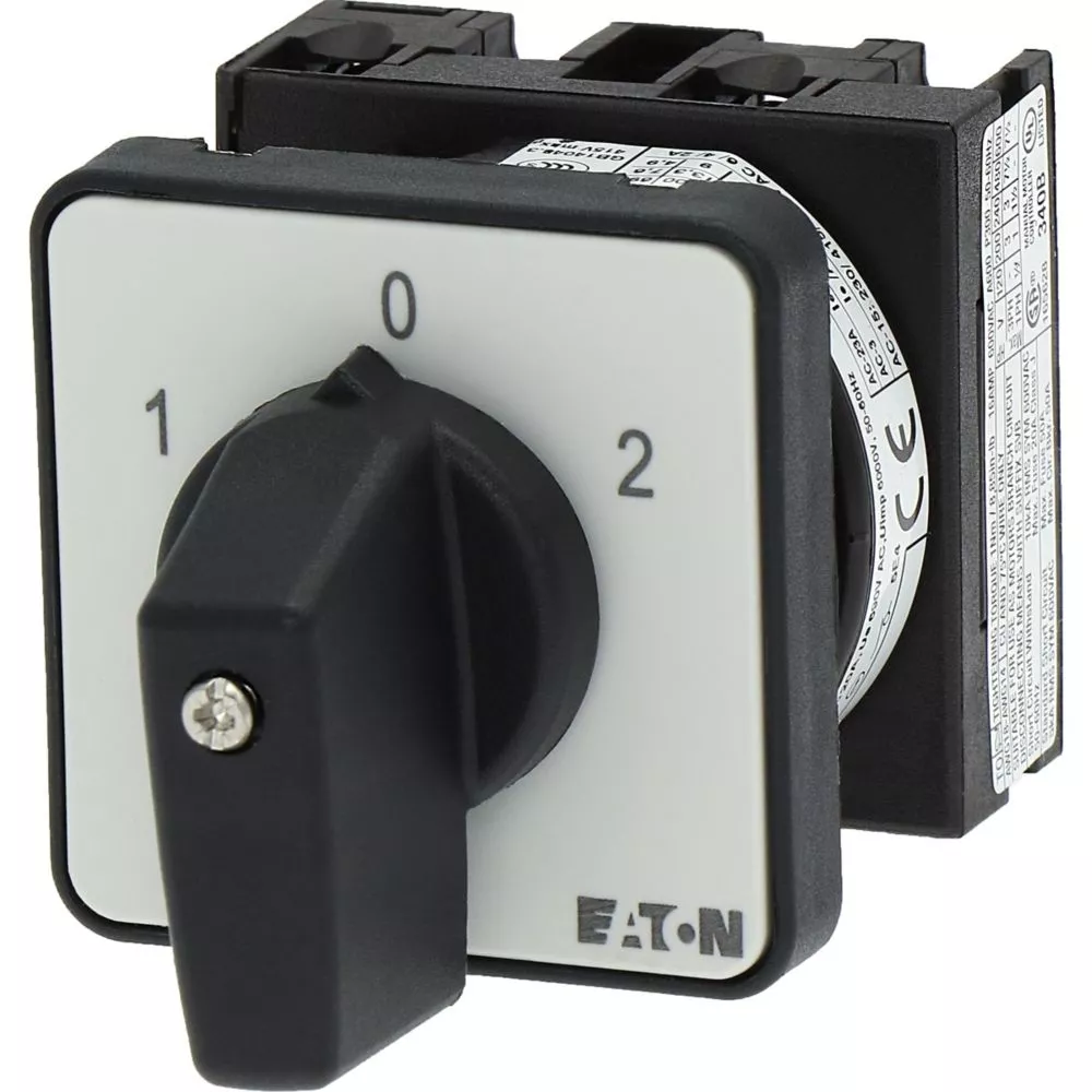 Łącznik krzywkowy wg IEC/EN60947, wielkość konstrukcyjna T0, kształt montażu, tabliczka czołowa 48X48, klasa ochrony na przedzie IP65 z czarnym pokrętłem, pomiarowy prąd stały Iu 20A, znamionowe napięcie pracy Ue 690V, dostępne akcesoria zgodnie z danymi katalogu łączników krzywkowych T. Konstrukcja ogólna: obudowa natynkowa z izolacją, montaż, montaż centralny, montaż pośredni montaż rozdzielacza IVS.