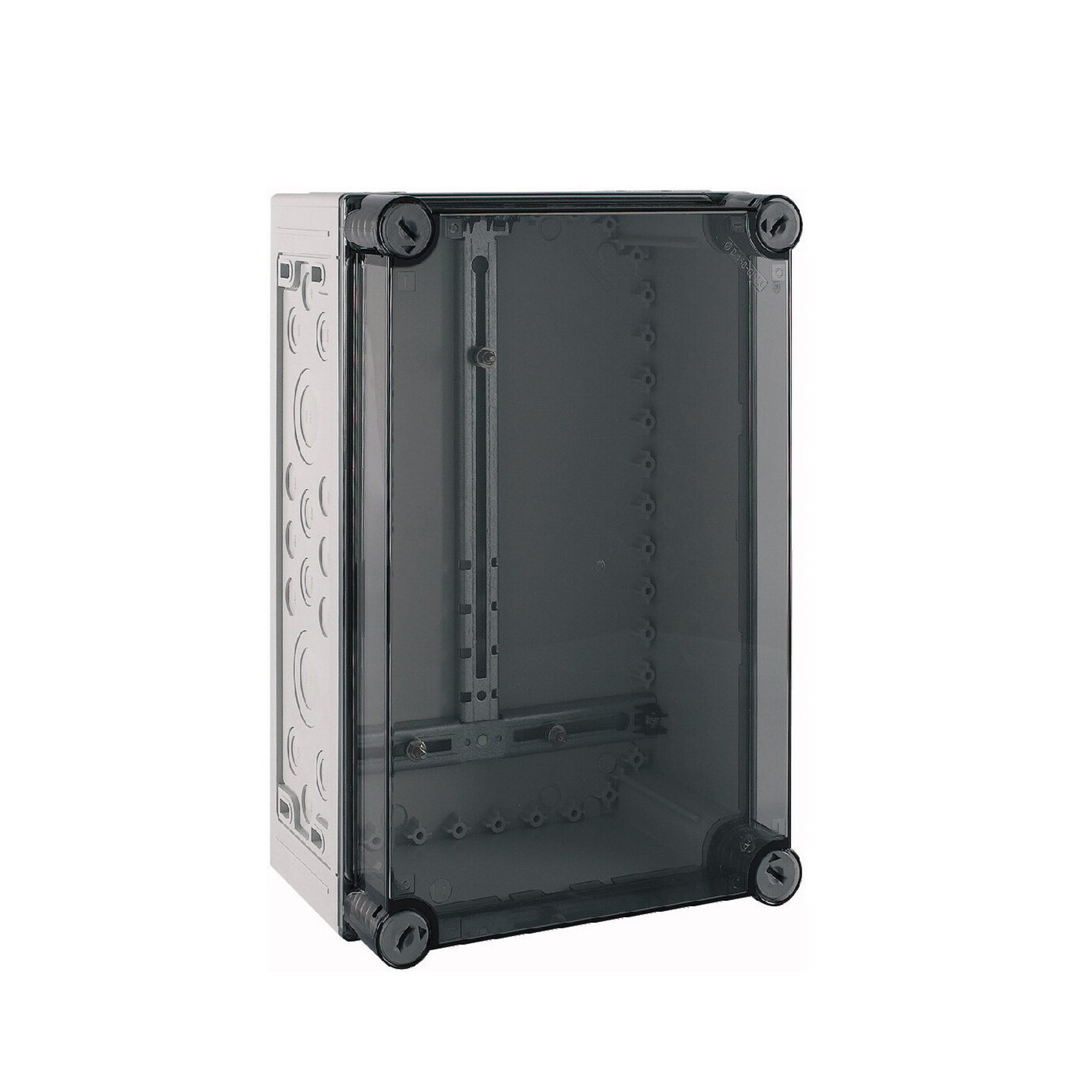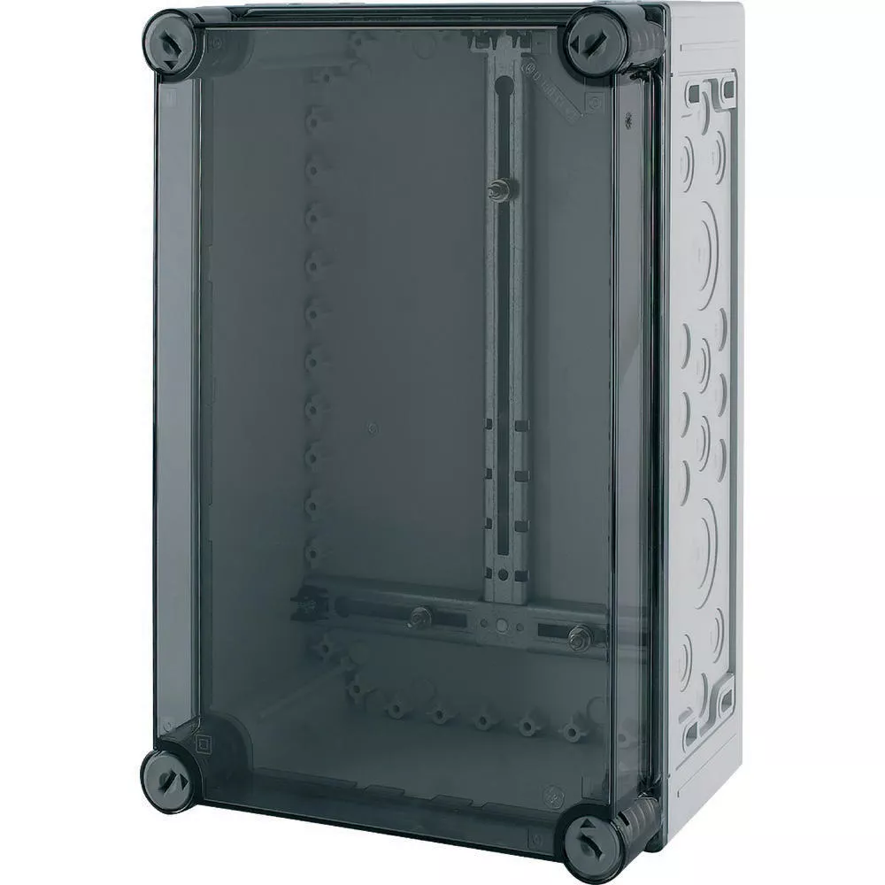 Obudowa licznika z krzyżem montażowym licznika, charakterystyka materiału Poliwęglan (PC), odporność na porażenia, opatentowane zamknięcie pokrywy z wbudowanym wyrównaniem nadciśnienia, głębokość=175mm, metryczne wytłoczenia we wszystkich ścianach bocznych, łączniki mocujące do uchwytu ściennego, plombowane zamknięcia pokrywy na górnej krawędzi pokrywy, krzyż montażowy licznika zgodny z DIN 43853 włącznie ze śrubami mocowania licznika i nakrętkami, stopień ochrony IP65, wersja pokrywy: przezroczysta