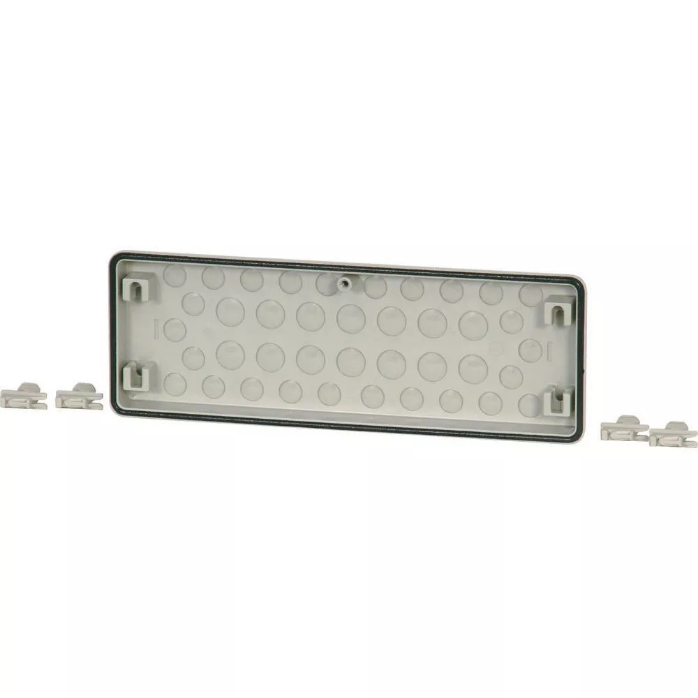 Flansza z materiału izolacyjnego, stopień ochrony IP65, piankowa uszczelka zabezpieczona przed zgubieniem, szybki montaż za pomocą połączenia klinowego (znajduje się w dostawie), do wymiarów obudowy 375mm, wprowadzenie przewodów: 26xM16, 14xM20