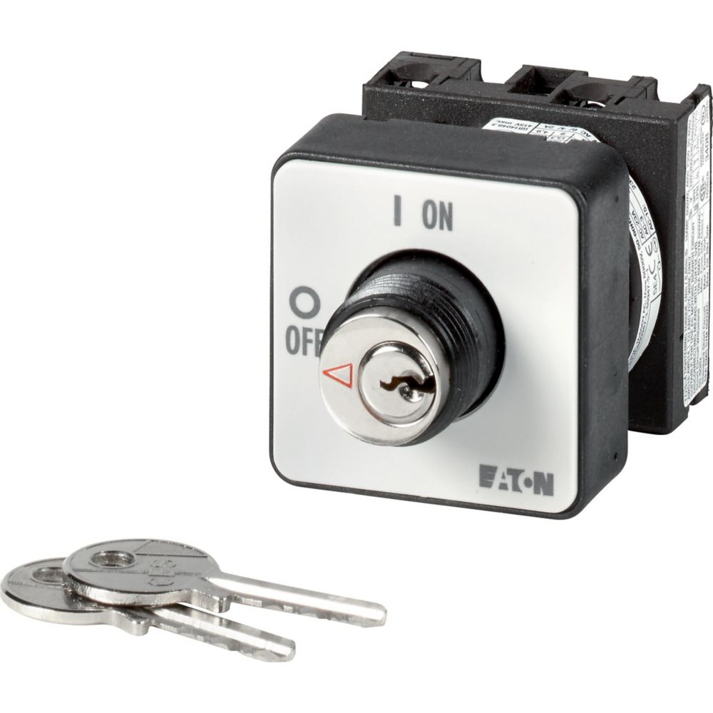 T0-1-102/EZ/S Przełącznik Zał.-Wył., 2 bieg., 20 A, napęd kluczykowy S-T0, tabliczka 0-1, 90 °, bez samopowrotu, montaż natablicowy 22,3 mm, mechanizm blokady przekręcenia kluczyka S-T0